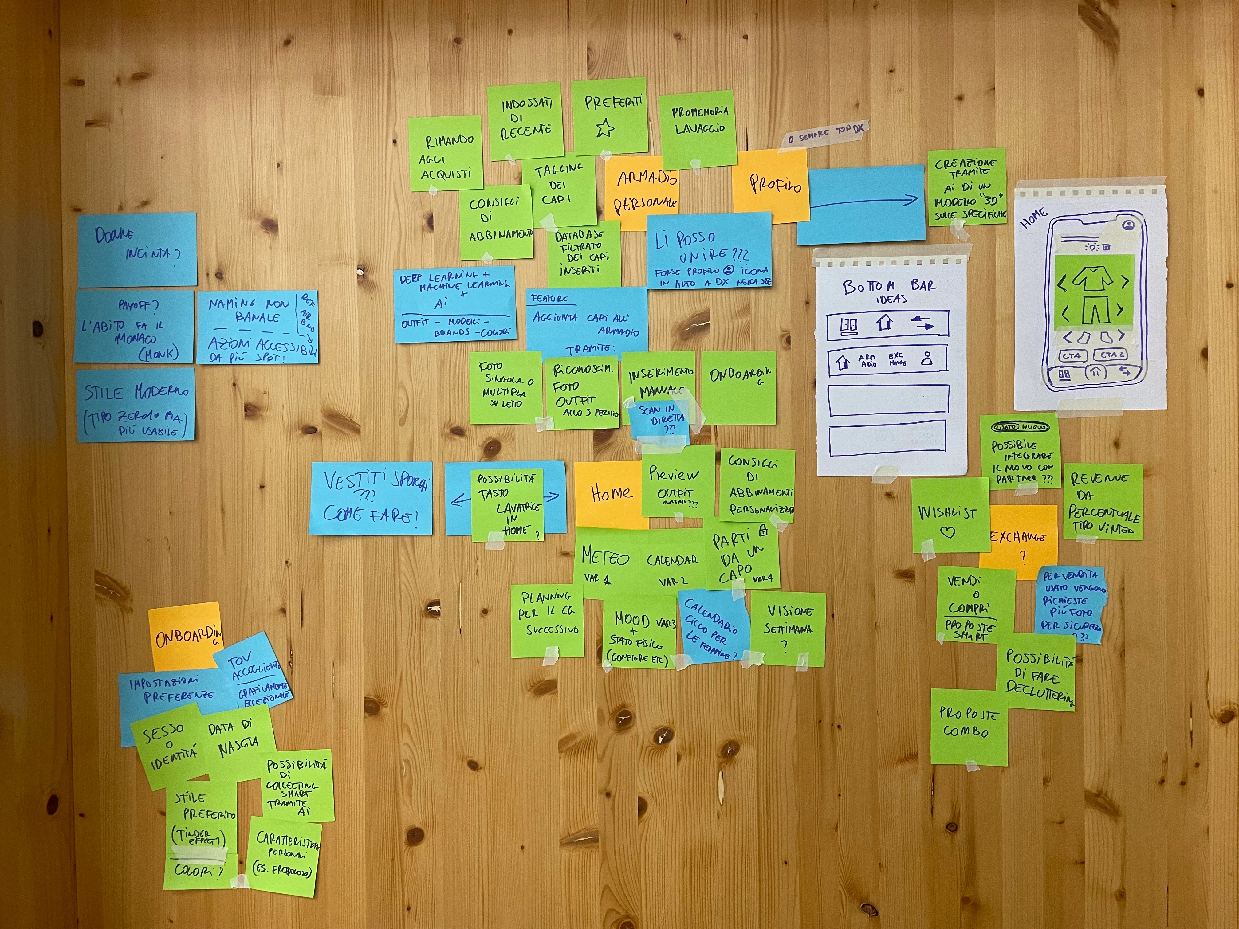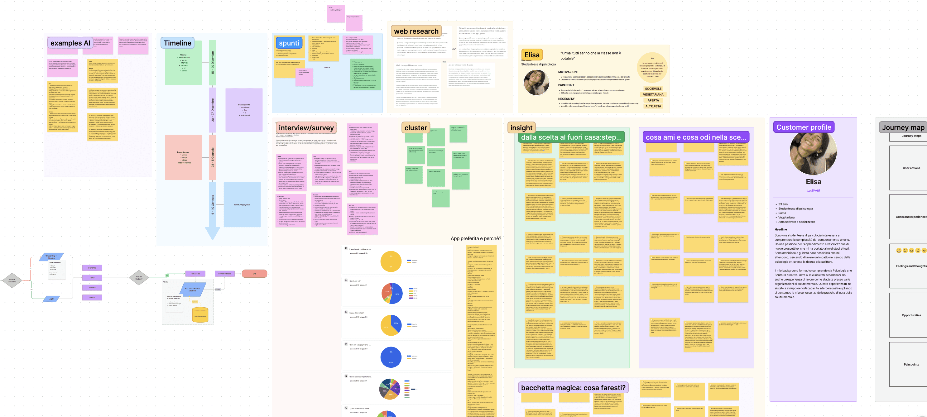 Research phase: I conducted around 10 interviews with potential users — people in my network who I knew struggled with similar daily decisions. The goal was to understand the emotional layer behind the problem: why does choosing an outfit feel hard? What makes a "good outfit day" different from a bad one? When do people feel most confident?