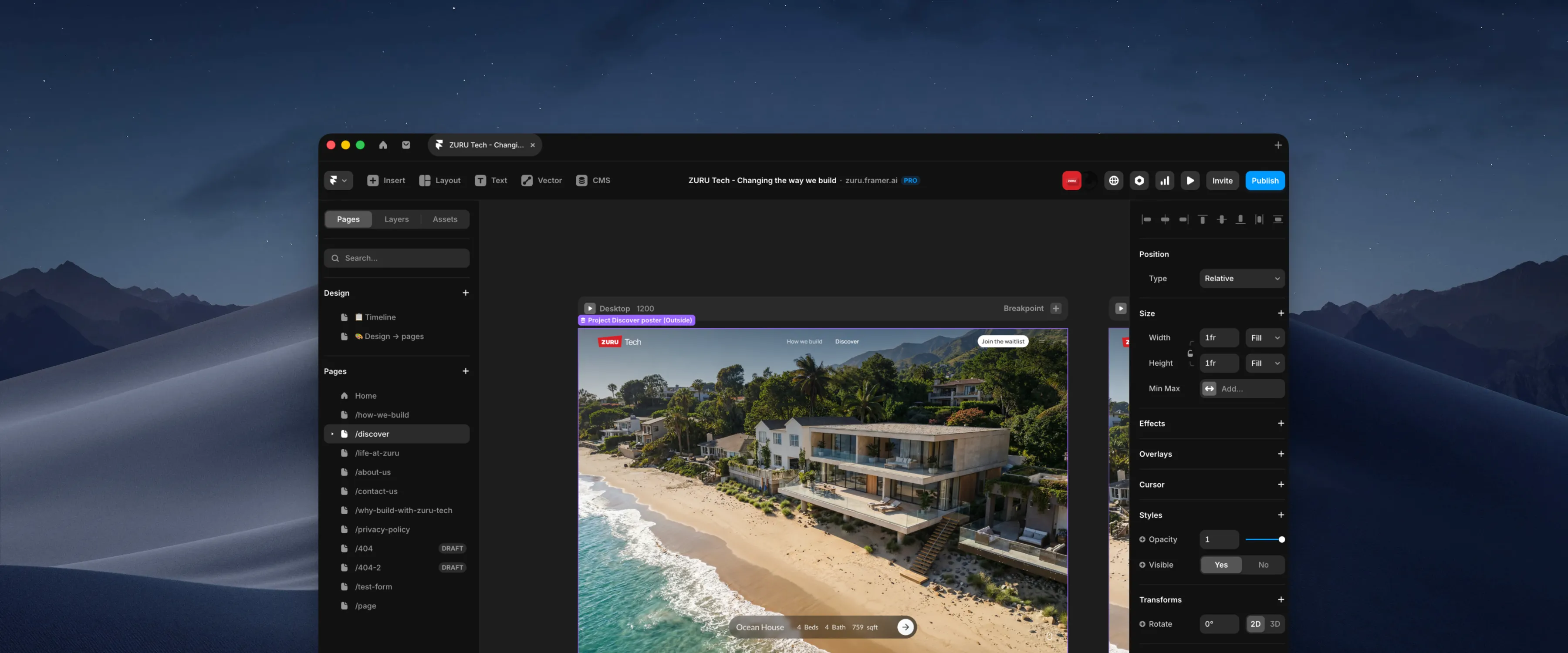 We started with the design system we'd built a few months earlier in Figma. I led the migration of that system into Framer — components, styles, spacing tokens, typography scales. Clean naming conventions. Organized layers. We built it to scale from day one.